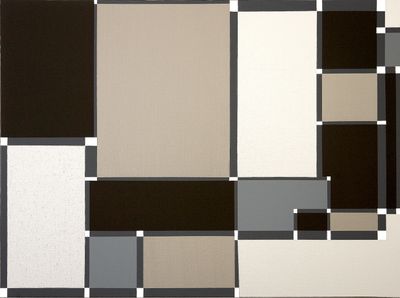 Since the mid-1970s his works have been based on weekly and daily newspapers - regional, national and foreign. Each painting is a kind of transcription of the front page or the whole paper. The color scheme has remained unchanged from the beginning: red for edvertisements, black for photos, grey or white for the rest which is not signified by other colors. Each series is identified by a code.