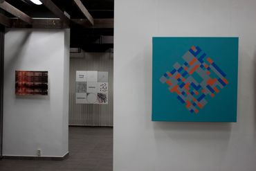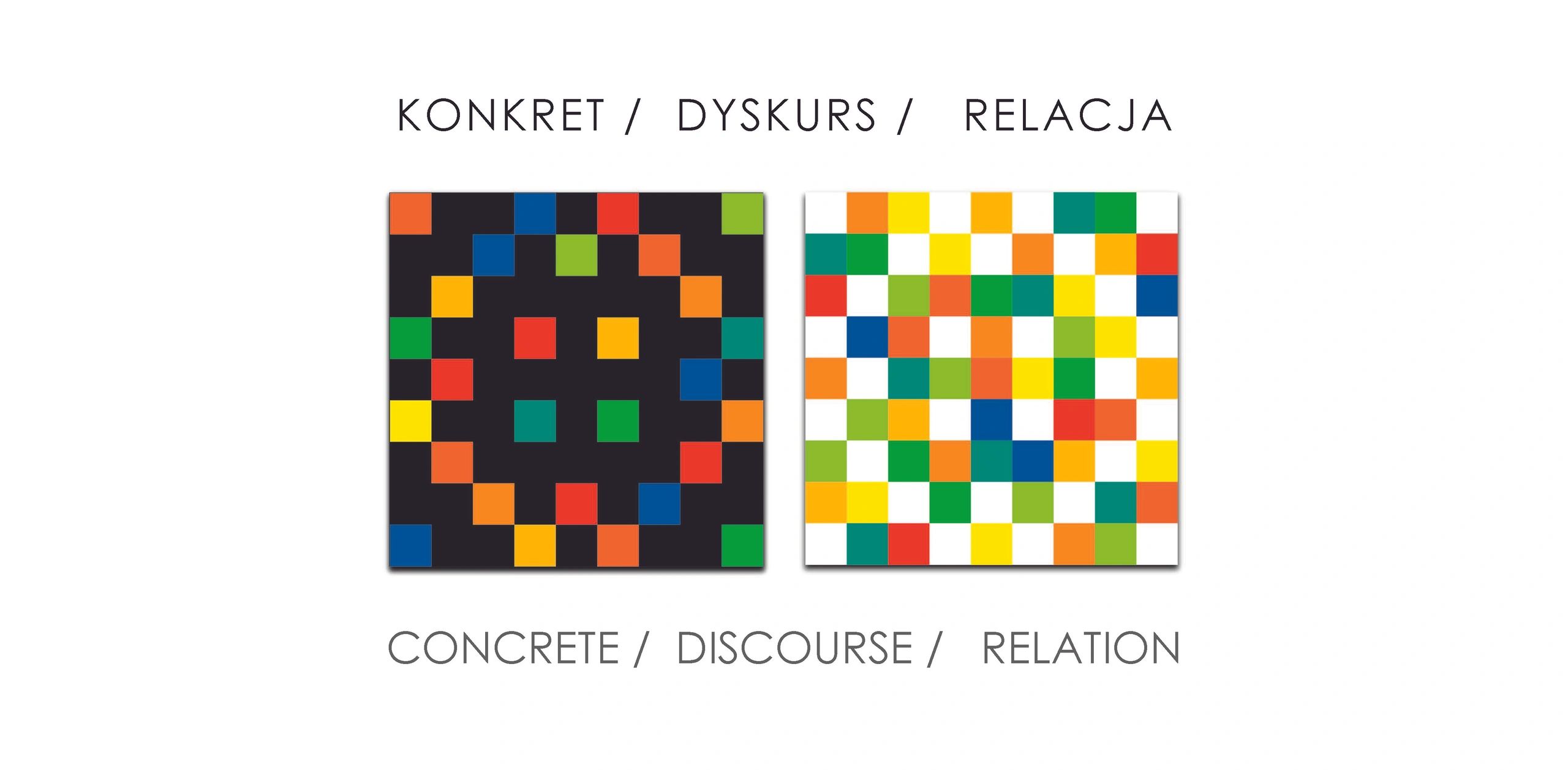 The international exhibition titled CONCRETE / DISCOURSE / RELATION showcases the works of 26 artists from 8 European countries: Austria, France, Spain, Germany, Poland, Switzerland, Hungary and Italy. The artistic standpoints presented are contained in two trends of geometric art – Concrete Art and Discursive Geometry. Concrete Art should be free from any symbolic references to reality, as lines and colors are concrete items themselves. In turn, Discursive Geometry presents diverse relations with reality, such as human behaviors, human participation in culture and art, everyday life, as well as other social relations, i.e.: