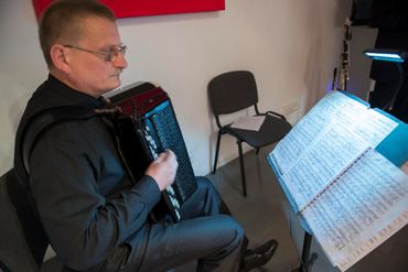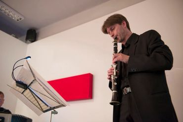 Nikola Dimitrov (Germany), pianist and painter, who in his visual art deals with the issue of tension between music and painting, creates rhythmic deep black structures with densities typical of op-art. He tries to convey the mood of the music with his painting structures and colors. He also carries out his works during the performances of musicians cooperating with him, simultaneously creating an image during the concert.