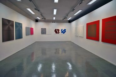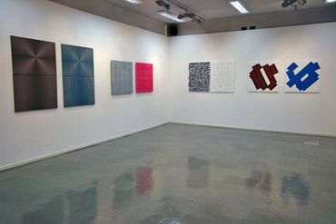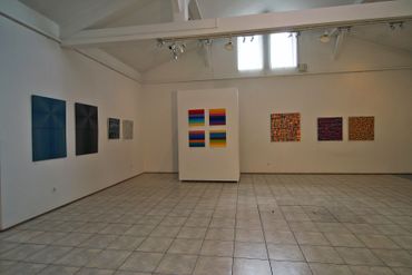 Rita Ernst (Switzerland) creates a series of works inspired by architecture, both sacred and secular (eg Mies van der Rohe Haus, Berlin). The process of transforming an architectural plan into a picture is carried out primarily by examining floor plans and building geometry, and then reducing the elements, leading to formal abstraction. It does not exactly reflect the plans of specific buildings, but rather presents a structural order, symbolizing the space of the building. The exhibition presents works from the new series "Konstruktive weite" realized in 2013 and presented at the premiere exhibition at the Museum Chasa Jaura in Switzerland.