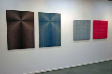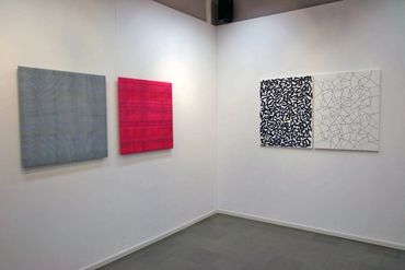 Gerhard Hotter (Germany) presents paintings from a series inspired by the Langford mathematical system. The analysis of this system leads the artist to visual structures in which he transforms the zero-one notation of the system, creating a new, own visual language. Hotter believes that this transformed form of communication contains an image of the universe. The infinite and non-repetitive sequences of the Langford system allow the artist to have various configuration options, which may also include: musical pieces, landscapes, poems, or parts of them ...
