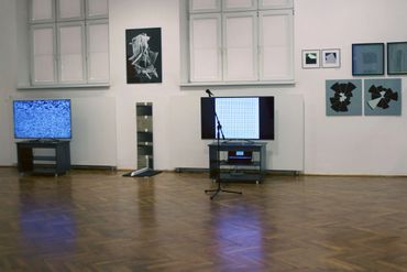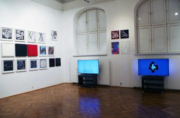 Finally, works from the realm of generative art addresses the subject of co-creation of works by computers. They are results of randomness, algorithms and computer codes. The works presented at the exhibition are real-time animations generated and visualized by a computer, which means that the projected images are never repeated.